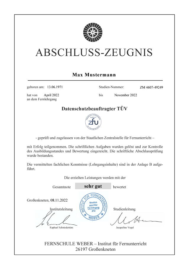 Ausbildung Datenschutzbeauftragter TÜV® im Fernlehrgang | Fernschule Weber | Zertifizierte Weiterbildung per Fernlehrgang