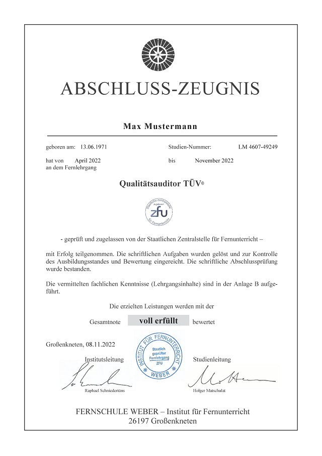 Ausbildung Qualitätsauditor TÜV® im Fernlehrgang | Fernschule Weber | Zertifizierte Weiterbildung per Fernlehrgang